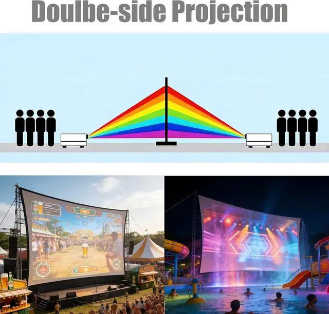 Foldable & Portable Double-Sided Design: Easily foldable for compact storage and transport; double-sided projection support allows front or rear projection, perfect for flexible outdoor setups with 4K HD projectors.
