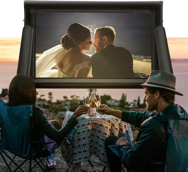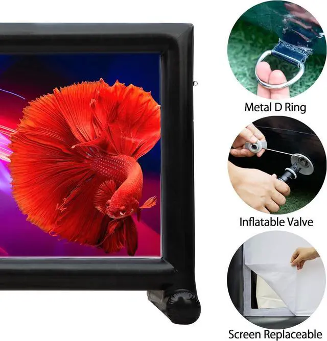Outdoor Movie Companion: The outdoor projector screen is the practical solution for outdoor movie projection. Add fun and excitement to any outdoor space for movie night, game day, or family camping trip weekend. If the air pressure of the screen frame is low after standing for a long time, please inflate it slightly.