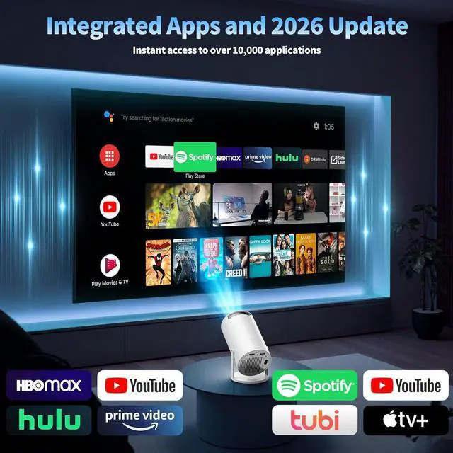 The projector supports HDMI, Bluetooth, mobile screen mirroring, and USB external hard drive connections. You can also select and play your favorite videos through the app on the projector.