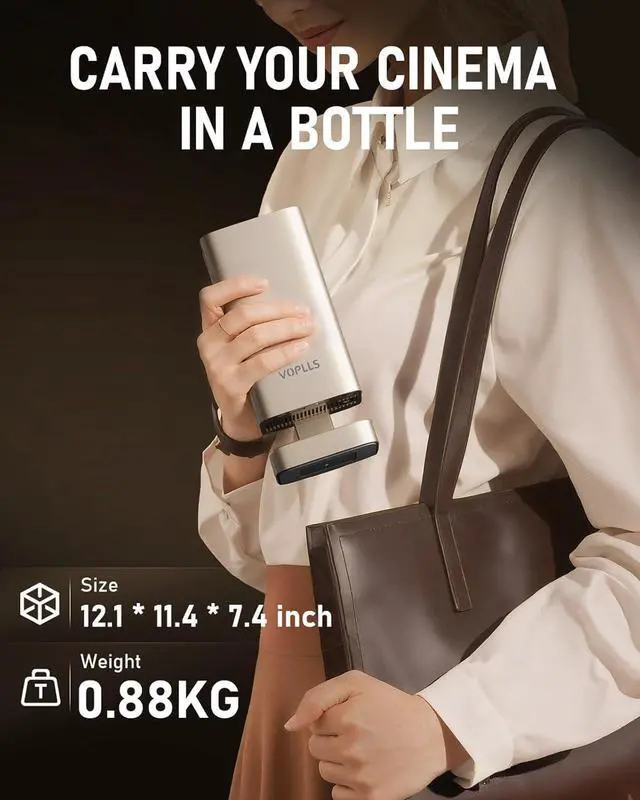 [Luxury Meets Portability] - Bid farewell to bulky projectors. Featuring a compact body, dimensional design, and refined texture, this mini portable projector transforms into a tasteful accent where technology meets art in your living room. At just 880glight as a magazinethe mini projector slips effortlessly into any bag. Perfect for travel or a summer movie night under the stars. 210° free-angle projection provides a distortion-free view from any angle, be it in a tent, a campervan, or on your ceiling. Your personal theater is now truly everywhere.