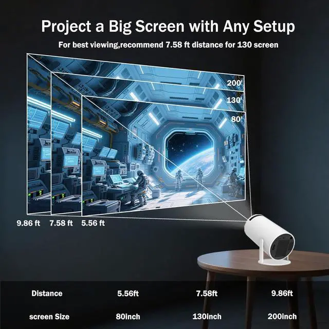 Smart Projector with Built-in AppsThis movie projector is powered by the advanced Android 13 operating system and equipped with the latest H713 chip, giving you instant access to popular streaming platforms like Netflix, Prime Video, YouTube, Google TV, and more. Enjoy a massive library of over 1,000,000 movies and TV shows anytime