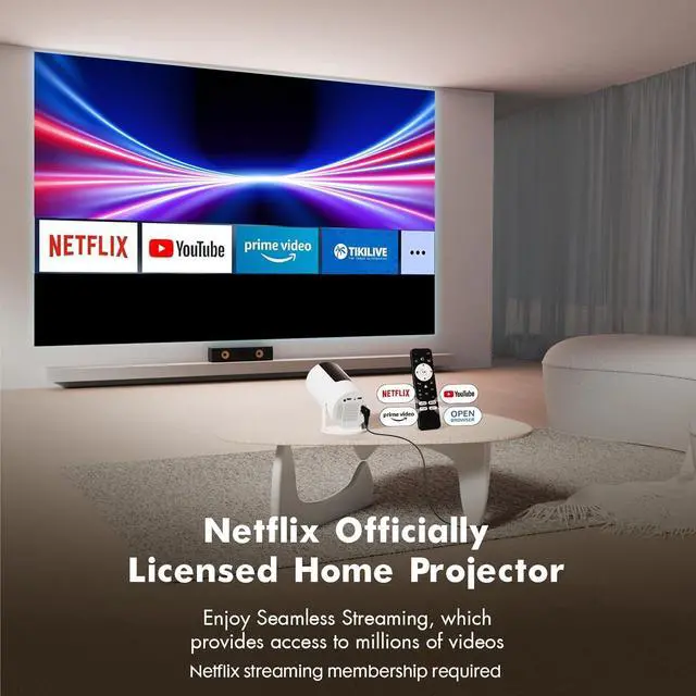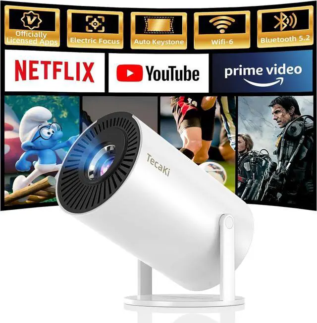 It's a fully featured Smart projector. Built-in smart TV system, including officially certified content from Netflix, Youtube and Prime Video, with Electric Fous, Auto Keystone Correction, Two Way Bluetooth 5.2 and Dual-Band 5G/2.4G Hz WiFi 6.