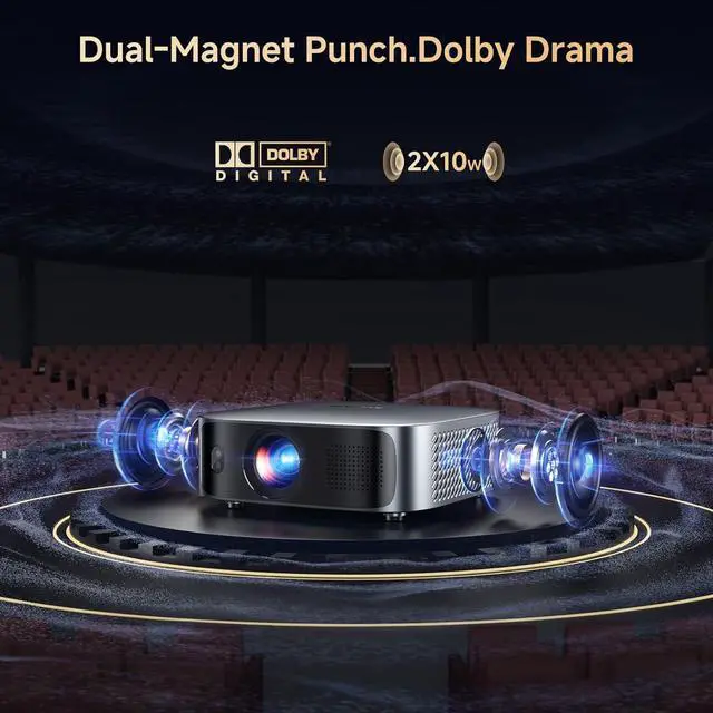 Cinematic Sound with Dolby Audio: The GC355 movie projector delivers immersive, theater-quality audio with Dolby Audio and dual 10W full-range drivers. Even in small rooms, it fills the space with powerful, rich sound deep bass, crisp highs, and lifelike detail, from drum hits to metallic echoes and string harmonics. Perfect for movies, gaming, or music, it rivals high-end home theater systems. Use built-in Bluetooth to connect external speakers or turn the projector with wifi and Bluetooth into a standalone Bluetooth speaker for parties or outdoor fun. With instant screen mirroring, stream games or apps from your phone to the big screen.
