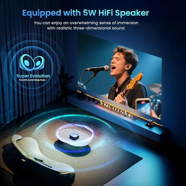 Home Theater TreatOur Bluetooth projector has a built-in HiFi speaker and supports Bluetooth 5.3 connection, realizing high-speed and stable two-way audio transmission. Not only can the sound be output to the speakers, but it can also be transformed into high-quality audio, direct playback of music, and audio-visual enjoyment beyond imagination. Portable-size design makes it easy to use as an outdoor projector.Christmas gift for men and women
