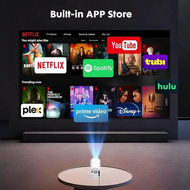 Built-In Smart Apps & Smooth OperationPlease Attention: Bluetooth function supports audio transmission only, not video!! Enjoy endless entertainment with our small projector with WiFi. The upgraded system comes with popular apps pre-installed for instant movies and shows. No extra devices are needed.The intuitive interface makes it easy for everyone to use right out of the box