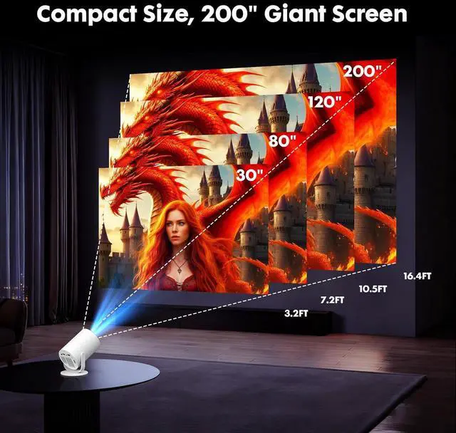 Ultra-Clear Picture & Electric FocusMini portable projector delivers a stunning 1200 ANSI lumens bright image with native 1080P and 4K support. Advanced technology and auto focus ensure sharp, vivid colors and perfect clarity in every detail. The auto keystone correction instantly gives you a perfectly rectangular screen