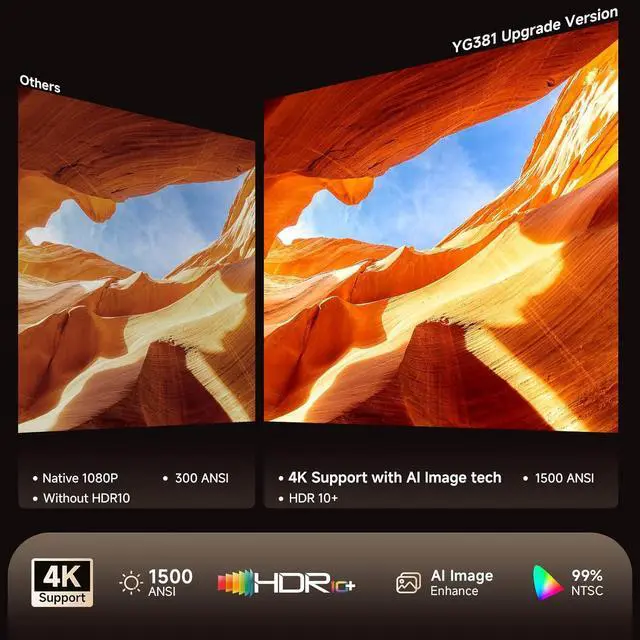 110X the Saving2Ture Smart Projector3Unlimited Entertainment Exceptional Performance: Equipped with native 1080P resolution, 1500 ANSI lumens brightness, and HDR10+ technology, iSinbox YG381 outdoor movie projector ensures clear, vibrant, and detailed images.