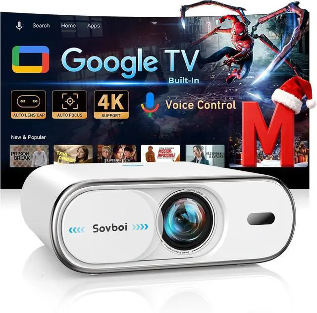 Auto-Guard Smart System: Aging-Proof Protection & Effortless Updates Sovboi E30Max 4K projector's auto-retracting lens cover prevents scratches and dust ingress (blocking>95% of particles/pet hair), extending the lens lifespan and saving you $100+ in potential repairs over 10+ years. With built-in Google TV, it self-updates via Wi-Fi to deliver real-time content updatesincluding new movies, live streams and gaming content. It doesn't just update but evolves. After every movie night and gaming session, it grows more intuitive, delivering content so seamlessly that it feels like the system reads your mind. Its a smart projector that saves money, time, and hassle