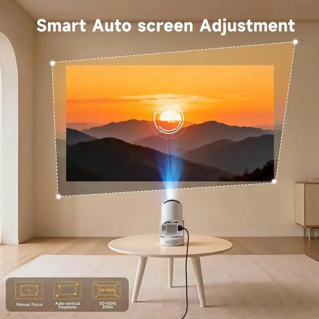 No more manual tweaking! This smart projector automatically sharpens the image and corrects distortion, so youre ready to watch in seconds.