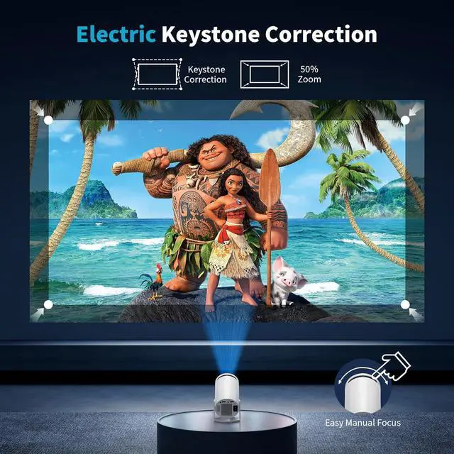 Versatile Adjustable Small ProjectorWith electric keystone correction and ±50% zoom, easily transform your wall into a giant Halloween canvas . Project bats flying across the ceiling, cobwebs crawling in corners, or a full haunted moon scene .