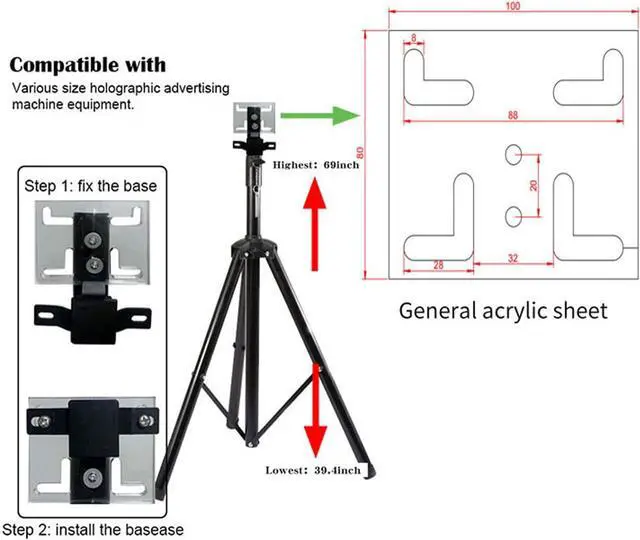 Equipped With A Multifunctional Base: Missyou 3DHologramFan Stand Is Equipped With A Multifunctional Acrylic Base, Compatible With All 3DHologramFan Bases In The Market. For Specific Hole Positions, Please Refer To The Picture Details.