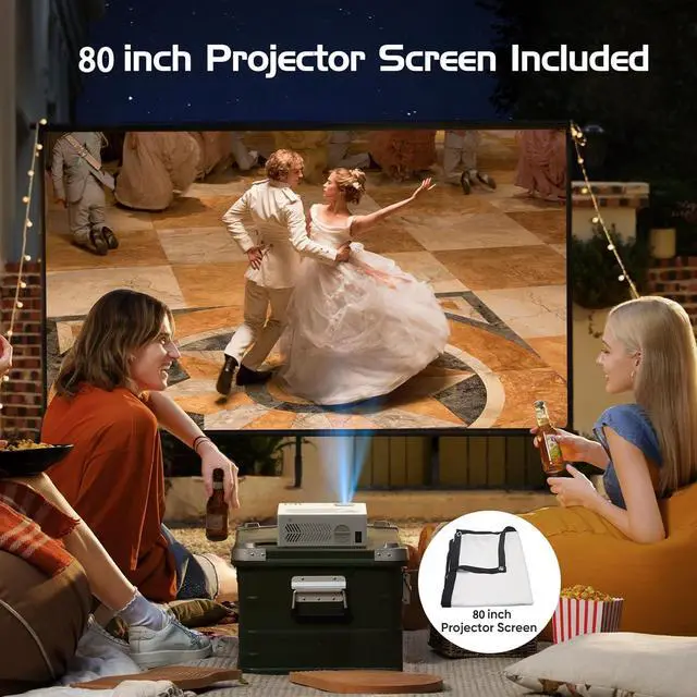 80 inch Portable Projector Screen IncludedThis 1080P Full HD projector includes a 80" projection screen that is tailored to meet our customer's needs. As opposed to other projectors, our included projector screen allows you to set up your own home theater anywhere to watch movies, TV shows, photos, slide shows, and play video games. This portable, foldable, anti-wrinkle and easy to wash 100" projection screen is larger than others, which ensures wider viewing angles and enhanced picture detail.