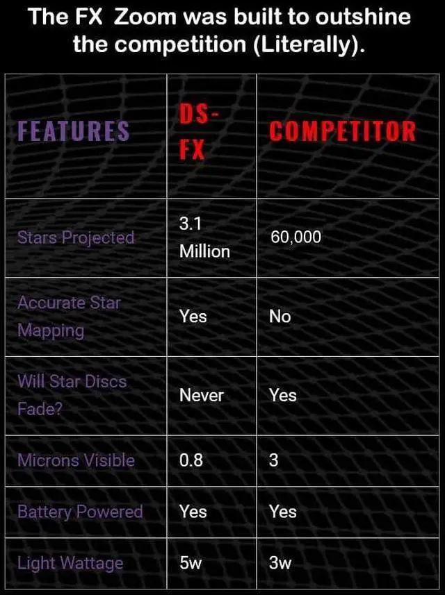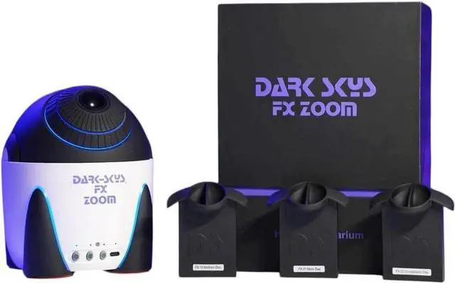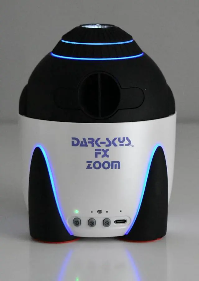 Miller Engineerings latest innovation, the FX Zoom Home Planetarium, designed to elevate your stargazing experience like never before! With its groundbreaking zoom lens, the FX Zoom allows you to customize the projected image to perfectly fit your ceiling or expand it to include the walls, creating an immersive celestial display transforming your room into a stunning night sky. As the worlds first home planetarium equipped with a zoom lens, the FX Zoom sets a new standard in home astronomy.