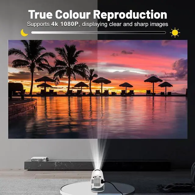 Maypug mini projector features native 1080P resolution and 200ANSI lumens which delivers a stunning clarity even in well-lit rooms. With 4K decoding capability and advanced HDR10 technology, it boasts a 1500:1 contrast ratio for deeper blacks, brighter whites, and 30% more accurate color reproduction. The 60Hz refresh rate ensures smooth motion in action scenes and gaming, while its theater-quality visuals transform any space into a premium home cinema.