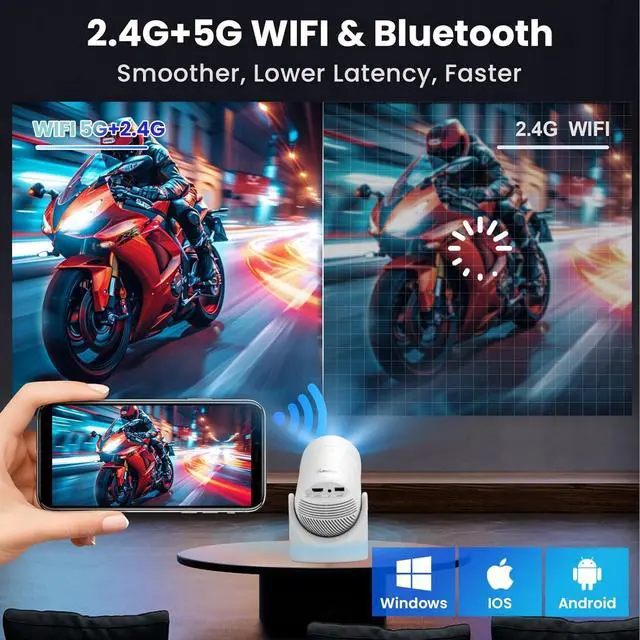 Note: Due to HDCP restrictions, wireless mirroring of paid streaming apps (e.g., Netflix, Disney+) from your phone is not supported. For full app compatibility, use a TV Stick Lite via HDMI. The Bluetooth function supports audio transfer onlyconnect to speakers or headphones for sound, or use the projector as a standalone speaker.