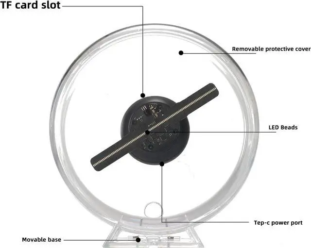 Make your store, event, or trade show a headliner with our 4.7-inch 3DHologramFan with Protective Cover. This mini Holographic fan delivers ultra-sharp 3D holographic projections that instantly grab attention. Lightweight, portable, and plug-and-play, it's perfect for storefront advertising, restaurant menus, or product promotions, ready to wow your audience. The protective cover keeps it secure for indoor tabletop displays while still projecting vivid visuals. Compatible with MP4 and JPG files, it can be easily updated via a smartphone app or computer. Make your brand memorableyour competitors won't stand a chance. This 3DHologramFan with Protective Cover will help you sell and turn heads! Turn every head instantly! This 3DHologramFan with Protective Cover projects jaw-dropping 3D visuals that look like they're floating in mid-air! Perfect for Halloween, Christmas, or any big sale, it grabs attention from across the roomcustomers won't just look, they'll stop in their tracks!