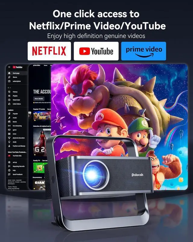 [Apps Projector] Polocsh Smart projectors are equipped with intelligent Linux system with regularly maintains and updates the apps to ensure you have the latest features, while also providing comprehensive security and stability. Access multiple apps and millions of streaming services at the touch of a button to seamlessly watch your favorite shows and movies.