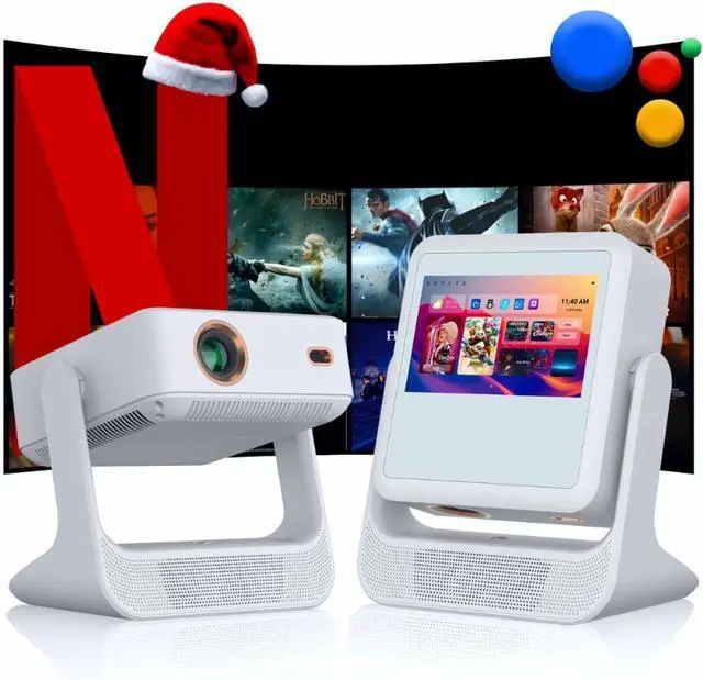 Aepuesom SmartTouch Projector: Command Your 300" Cinema with a Tap World's 1st 8" Touchscreen Projector Ditch remotes forever! The built-in 8-inch smart touchscreen lets you swipe, tap, and control like a tablet browse Netflix, fast-forward movies, or check weather instantly. 96% of users confirm: its the ultimate upgrade from clunky menus. Cinema-Grade Visuals & Sound 300" Giant Screen + 800 ANSI Lumens: Native 1080P/4K HDR10+ with 28% richer shadows vs. standard projectors 25W Theater Sound: Chest-thumping audio + Bluetooth sync for multi-speaker immersion Auto Magic: 5-second focus & keystone correction perfect visuals even on tilted ceilings No Sticks. No Limits. Built-in Android App Store delivers Netflix/YouTube/Prime Video directly no streaming devices needed. Unlock 1M+ films with one-tap streaming, backed by updates for lifelong optimization. Hyper-Speed Connectivity WiFi 6 Dual-Band: <0.03s lag for competitive gaming & 4K streaming Bluetooth: Pair headphones + soundbars simultaneously (audio only) Portable Freedom, Perfect Gift From backyard parties to camping under stars: 180° rotatable base + 50-100% zoom for any surface HDMI/USB ports connect PS5/Switch/phones instantly Surprise loved ones with cinema anywhere voted Most Giftable Tech by 3 media.