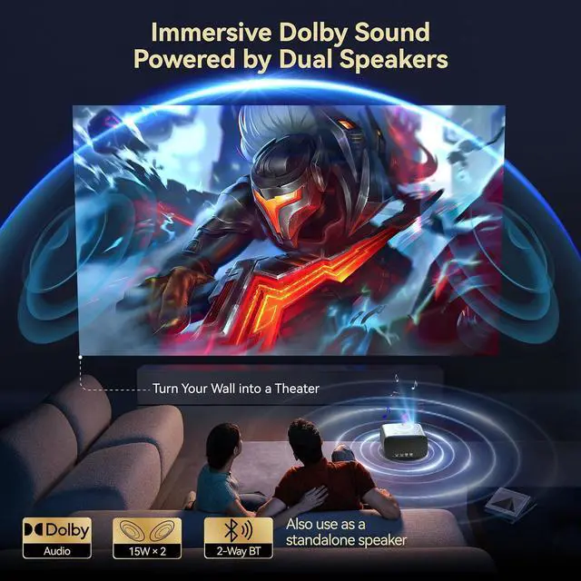 [Cinematic Dolby Sound] Enjoy native 1080P resolution with 4K support and 1200 ANSI lumens for bright, crystal-clear imageseven in ambient light. This movie projector features Dolby Audio and a robust 30W speaker, bringing every movie, game, and music track to life with immersive sound. Transform your space into a personal home theater anytime. This is your invitation to immerse yourself in a true audiovisual feast.
