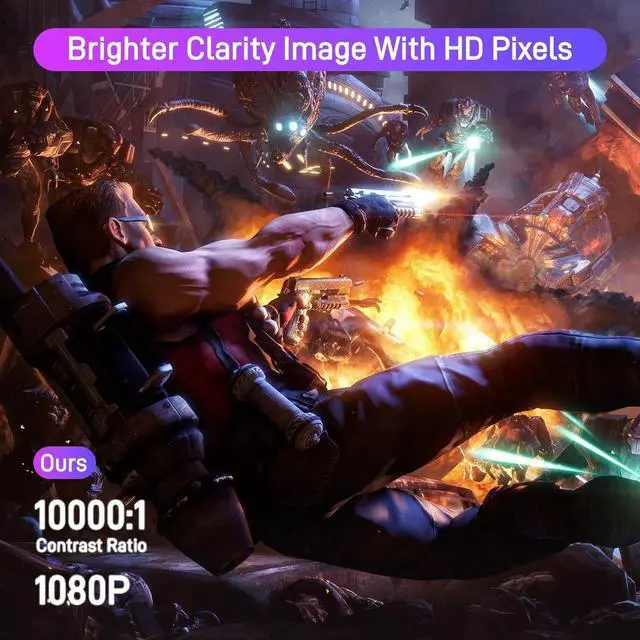 True Native 1080P ResolutionThe Full HD Native 1080P Projector utilizes a bright LED light source and LCD display technology. With an upgraded 440 lumens high brightness, along with a high 10,00:1 contrast ratio, Makes bright and dark areas of an image more prominent, providing a clearer image.