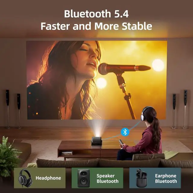Bluetooth 5.4 for Seamless Audio Freedom Wirelessly connect to your favorite Bluetooth speakers or headphones with the latest Bluetooth 5.4 tech.Need louder sound? Connect to external speakers for a full-room cinematic experience. Want a private movie night? Pair your wireless headphones and enjoy immersive audio all to yourselfno distractions, just you and the screen
