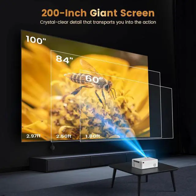 Portable Mini ProjectorWeighing just 2.8 lbs and sized at 7.9×5.9×2.8 inches, this pocket-sized projector seamlessly transitions between home cinema nights, outdoor movie campouts, business presentations, gaming sessions, fitness tutorials, travel entertainment, and pop-up eventsdelivering crisp big-screen magic anywhere with wireless connectivity and universal compatibility. (NOTE: No Battery Included in projector)