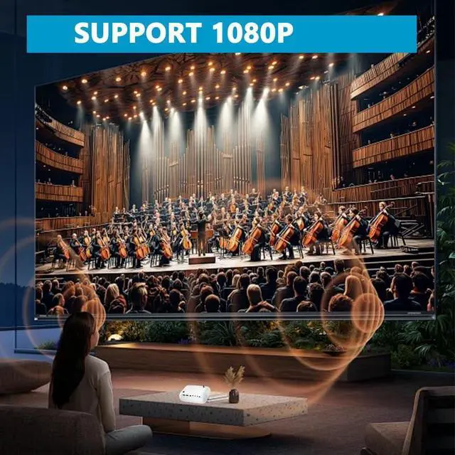 Full HD 1080P & Eye Protection - Supports 1080P resolution for stunning visuals.24-bit true color support, 200 inches huge screen, provide detailed images for indoor and outdoor