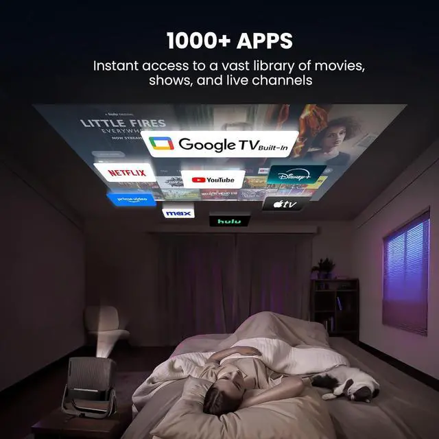 1Why Choose Google TV? 21000+ APPS3Save Money4Official Google TV5Voice Control11000 Ansi Projector2Big Screen3Ceilling Projection4Place Any Where5Projector With Any Device120W HiFi Speaker22 Way Bluetooth3Phone Screen Mirror4Project All Your Want1Kids Mode2Protect Kids Eyes34