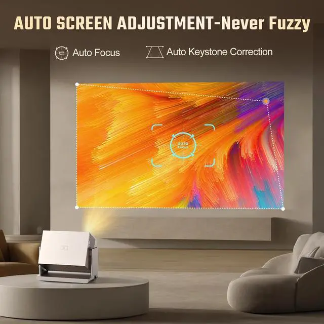 [Instant Auto Focus, Smart Keystone & 180° Flexi Stand] Experience effortless clarity with QKGs advanced AI auto-focus and displacement gyroscope technologydelivering razor-sharp images in just 3 seconds, no manual adjustment needed. The built-in 4D keystone correction intelligently aligns your screen, even on uneven walls or at off-angles, giving you total freedom of placement. Plus, the 180° foldable stand lets you project on walls,