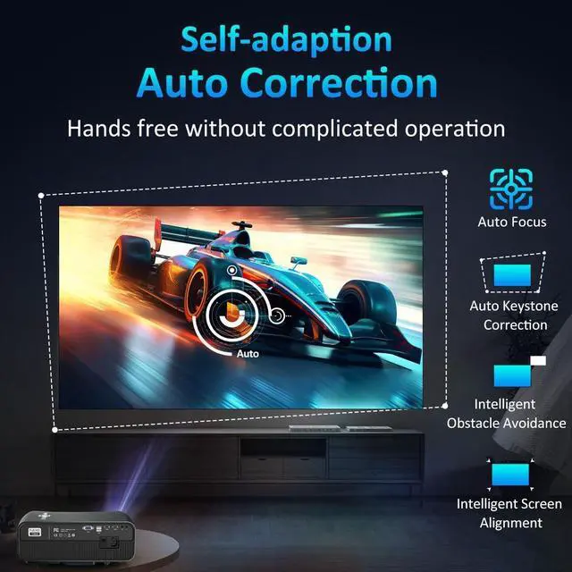 Auto Setup Perfection | Adjustable Projector delivers a flawless 50200 image within seconds thanks to auto focus and keystone correction. Whether on a coffee table or ceiling-mounted, enjoy a clear, perfectly shaped view every time.