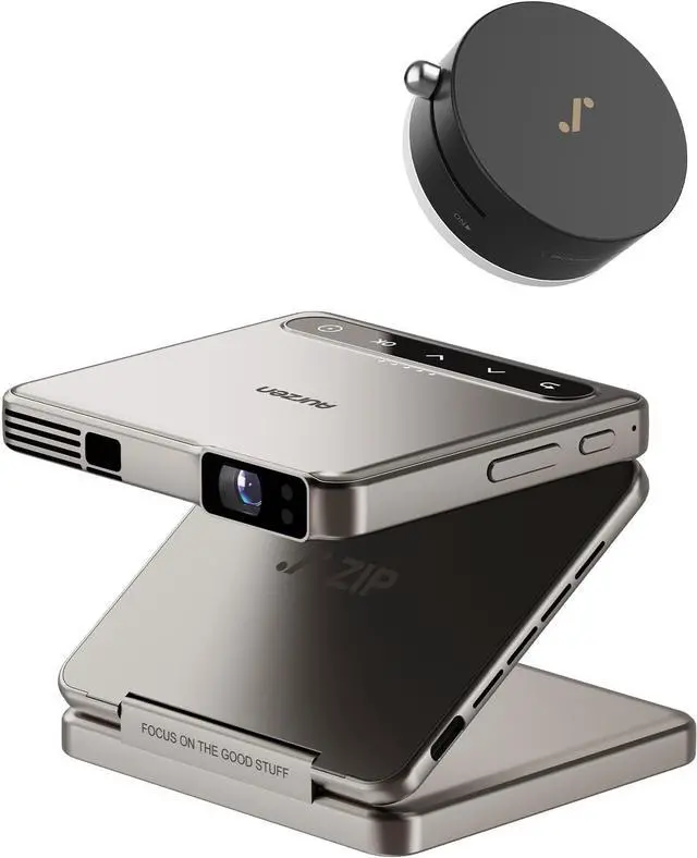 ZIPThe Worlds First Tri-Fold Truly Portable Projector: ZIP is the first Z-shaped tri-fold DLP projector with an ultra-compact pocket screen crafted through precision engineering. This mini projector is the smallest foldable projector ever to redefine portability, folding down to a size close to a wallet while packing advanced projection features into a sleek, travel-ready design. Wherever you are, ZIP portable projector delivers big-screen magic in the palm of your hand.
