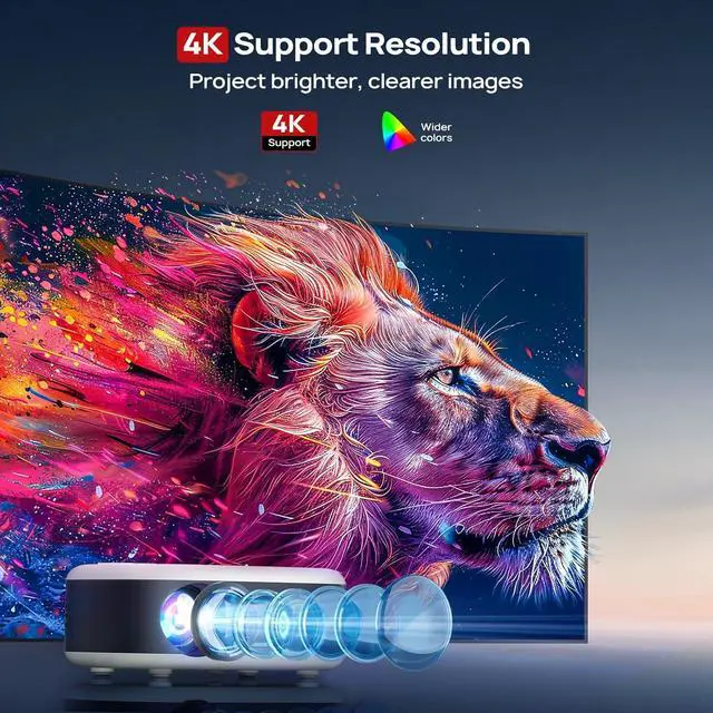 Short Throw, Big Screen - 4K Projector Power in Tight Spaces: Dont let limited space stop the fun. This compact short throw projector projects up to 150 with sharp detail and rich color, even from a short distance. With support for projector 4K input and a high 5000:1 contrast ratio, this 4K projector delivers impressive visuals whether you're in a small room or an open backyard.