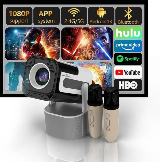 Seamless Connectivity: This portable projector features Bluetooth and WiFi and HDMI connectivity, allowing for quick and easy setup. Effortlessly connect your devices and stream content directly through built-in WiFi, making it perfect for home entertainment or hosting karaoke parties.