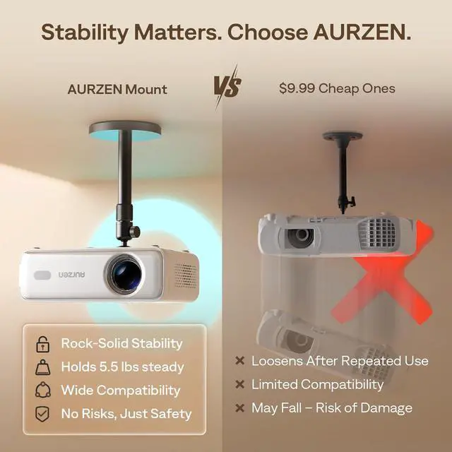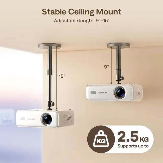 Safe Weight Support Ceiling 2.5KG / Wall 1KG: Securely supports up to 2.5KG (5.5 lbs) when used as a ceiling bracket for projectors, and 1KG for wall installations. For safety, mount only on solid wood, brick, or concrete surfaces