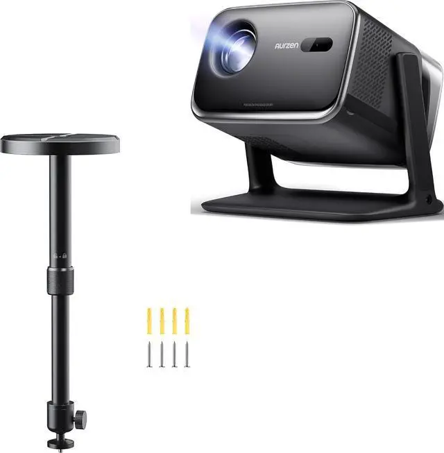 Complete Projector Mounting Kit Included: Ceiling Mount Base with Cover ×1, Telescoping Pole with Pre-installed Ball Head ×1, Screw Kit (Screws ×4, Expansion Anchors ×4), and User Manual ×1 everything you need for quick projector ceiling bracket setup