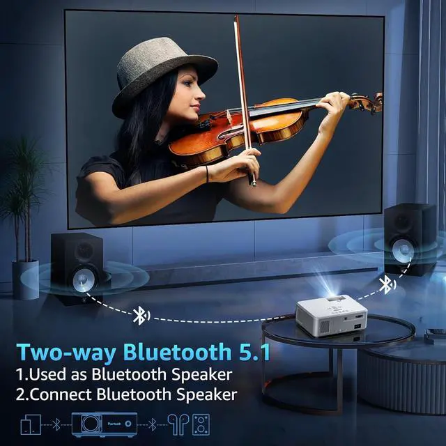 [HI-FI STEREO SPEAKER & BLUETOOTH 5.1] Pericat movie projector engineered with a built-in speaker, provides stunning stereo sound effects. Besides, our 4k ultra hd home theater projector build-in advanced Bluetooth 5.1 chip is supported to connect with your own ideal speaker or headphone wirelessly. Enlarge your happiness with our wireless projector, just enjoy it!