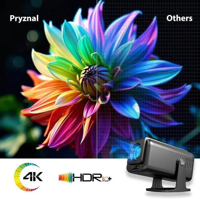 [4K Ultra HD-Native 1080P Home Theater Projector with Eye Comfort]: Pryznal's projector delivers native 1080P resolution and 4K upscaling for razor-sharp details, while 450 ANSI brightness and 6000:1 contrast bring vivid colors and cinematic depth. Engineered with low-blue light mode and flicker-free imaging, it's perfect for family movie nights or weekend outdoor movie nights under the stars.