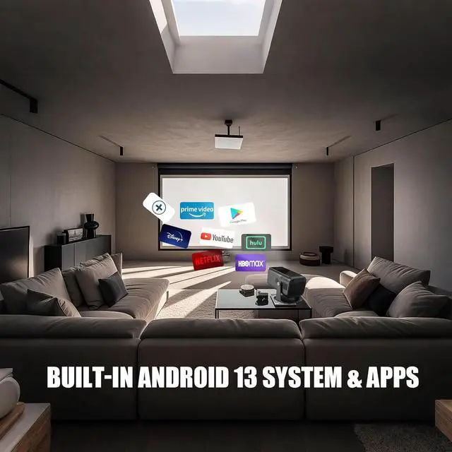 [Built-in Android TV OS-No External Box Needed]: The Pryznal Smart Projector features a native Android-Based System, eliminating the need for extra streaming devices. Effortlessly cast content from phones, tablets, or laptops using screen mirroringperfect for movies, gaming, or work presentations. Transform any space into a cinema or office with seamless wireless switching.