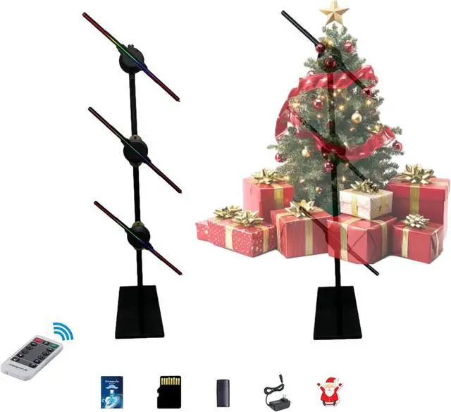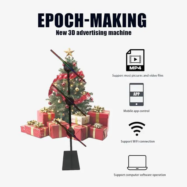 This 3-unit 42cm 3D hologram fan creates an impressive 40.9-inch display, offering stunning visuals with high-definition resolution. Ideal for Christmas and Halloween events, this fan provides a fully immersive experience that brings your displays to life. Whether used for store promotions, party displays, or trade shows, the seamless splicing technology ensures a smooth and captivating presentation. Enjoy the flexibility of remote control and Bluetooth connectivity, allowing for easy operation and sound integration. Perfect for any occasion that demands attention-grabbing visuals