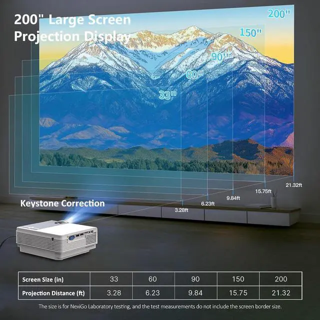 Native 1080P & 4K SupportedThis movie projector brightens your life! It brings movies and shows to life in dark environments with Full HD resolution and 12,000 L of brightness. This projector is perfect for large screens from 40" to 200". You can easily resize the image from 100% to 50% without moving the projector. By providing clear images while protecting the eyes, this home projector adopts high-refraction 6 layers glassed lens and diffuse reflection eye-caring light source