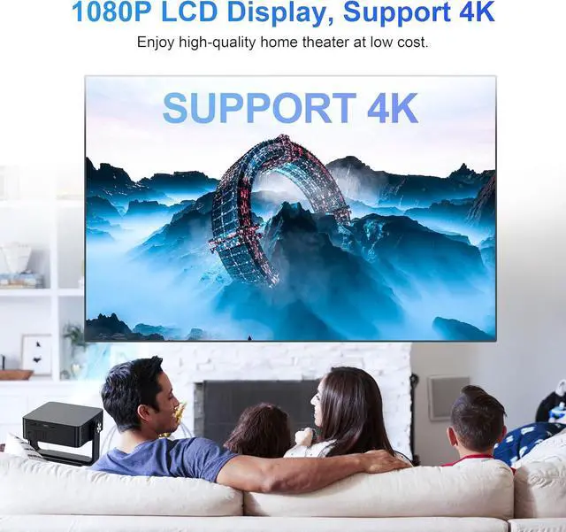 Native 1080P Resolution & 300 ANSI LumenExperience breathtaking visuals with true FHD 1080P resolution and 300 ANSI lumen of brightness. Every frame is sharp, vibrant, and color-accurate, while 4K playback support takes your viewing to the next level. Whether youre in a dark room or enjoying an outdoor movie night, enjoy rich contrasts, deep blacks, and brilliant whites for a fully immersive cinematic experience.