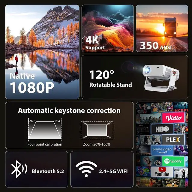 Android 11 Smart System Built-in Apps projector with wifi and bluetooth Seamless Compatibility Across All Your Devices Does it support 4K image quality?