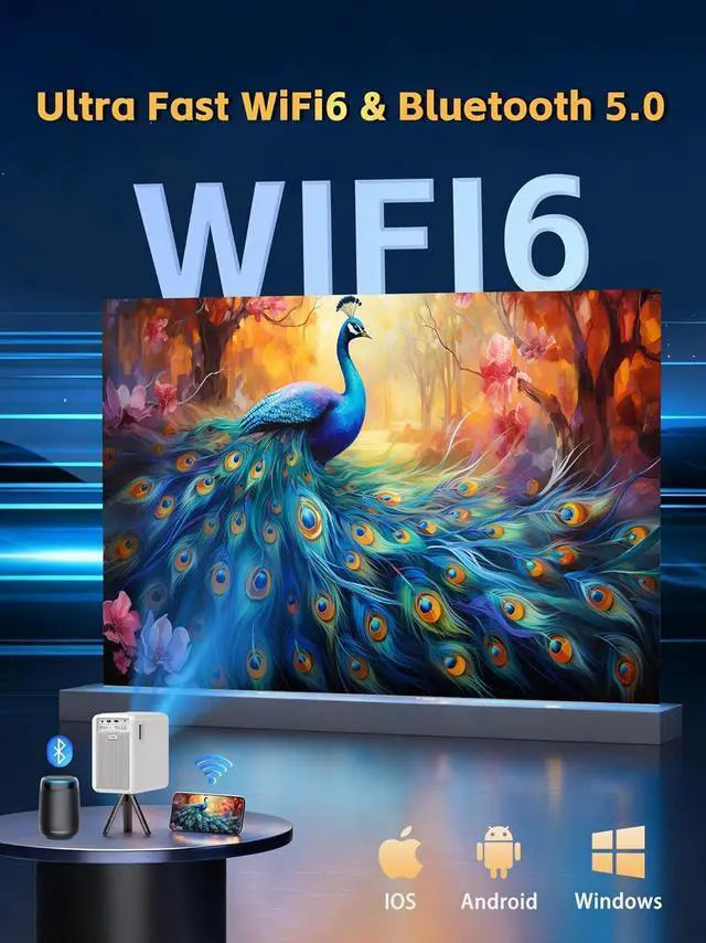 High-Speed WiFi 6 & Bluetooth 5.0WiFi Bluetooth Projector with Buffer-free 4K streaming with the latest dual-band WiFi 6 connectivity. Easily connect wireless headphones, speakers, or game controllers via Bluetooth 5.0 for enhanced audio freedom. Multiple interfaces HDMI, USB, AUX get versatile connectivity to all your devices.