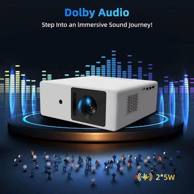 Travel-Ready Design with 360°Projection & Premium AudioWeighing just 3.75 lbs, this compact yet powerful bluetooth projector is ready to go wherever you areindoors or out. The adjustable stand offers true 360°projection, and the built-in 5W high-fidelity speaker pumps out rich, immersive sound without needing external devices. From camping trips to backyard movie nights, this proyector 4K ultra HD brings theater-quality viewing to any space, powered by lightning-fast WiFi 6 and Bluetooth for smooth streaming