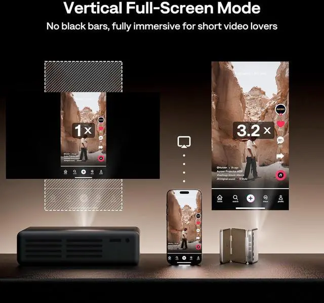 ZIPThe Worlds First Tri-Fold Truly Portable Projector: ZIP is the first Z-shaped tri-fold DLP projector with an ultra-compact pocket screen crafted through precision engineering. This mini projector is the smallest foldable projector ever to redefine portability, folding down to a size close to a wallet while packing advanced projection features into a sleek, travel-ready design. Wherever you are, ZIP portable projector delivers big-screen magic in the palm of your hand.