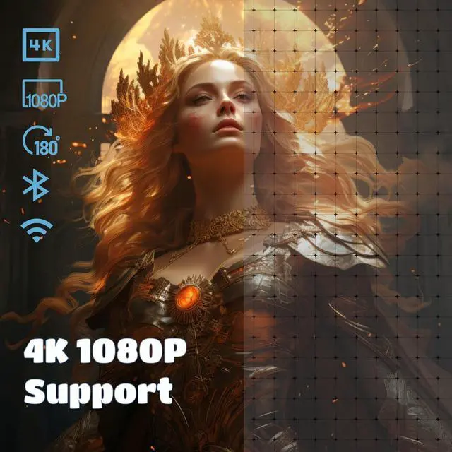 4K 1080P HD ProjectorThe home movie projector has a native resolution of and supports Full HD 1080P. 120 ANSI brightness brings you the best video experience in dimly.