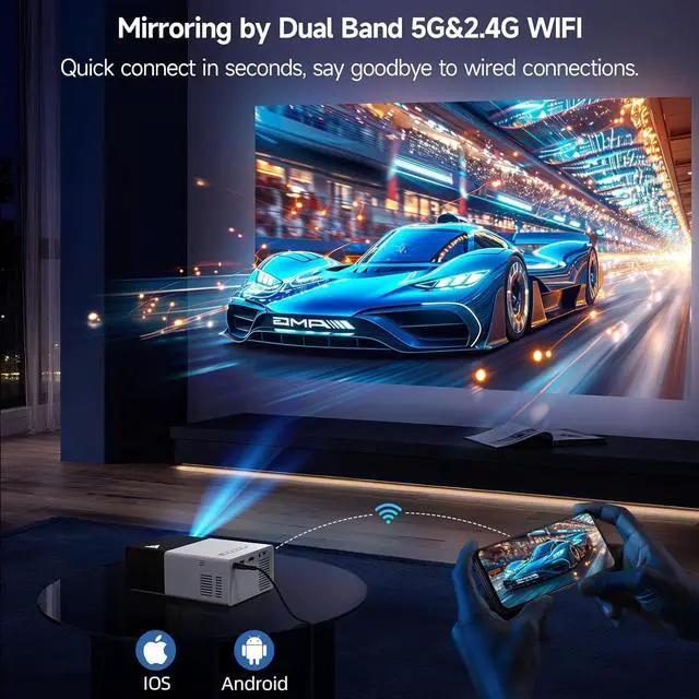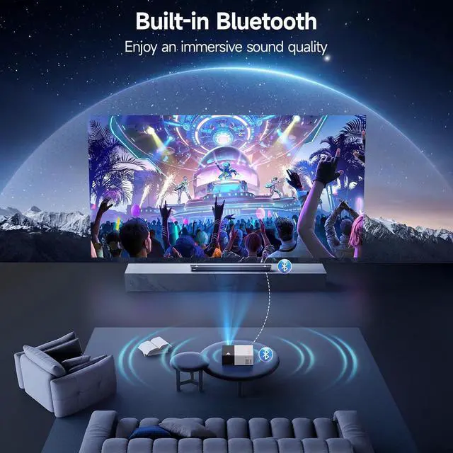 Ultimate Wireless FreedomStream, game, and watch movies wirelessly with Nasin 1080P projector's dual-band 5.8G/2.4G WiFi 6 and two-way Bluetooth 5.4 for audio flexibility. Use this movie projector as a standalone speaker or pair with headphones, soundbars, or speakers for theater-quality soundno messy cables, just seamless wireless entertainment! (Bluetooth for audio only.)