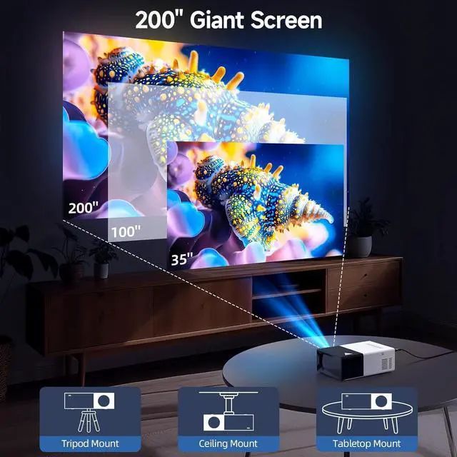Ultimate Big-Screen EntertainmentTurn any room into your personal theater! This cheap projector connects effortlessly with laptops, smartphones, tablets, USB drives, PS5, Xbox, and more. Enjoy movies, binge shows, follow workouts, or share photos in stunning detail. Gamers love the immersive big-screen experience see every detail in action! Perfect for movie nights, sports viewing, gaming, and more!