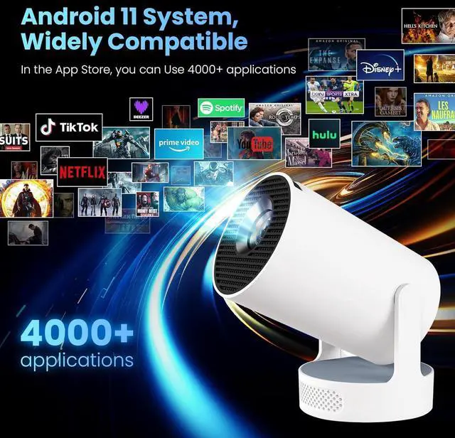Smart Projector: Powered by the advanced Android 11 system, this smart projector comes with built-in app that gives you easy access to mainstream streaming services such as Prime Video, YouTube,TikTok and more. With the WiFi 6 technology, it delivers superior connectivity and performance for an unparalleled smart movie watching experience.