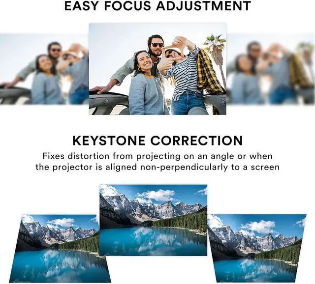 Connections: VGA / 2 HDMI inputs / USB input (up to 1000GB) / Micro SD card / 3.5mm headphone jack / AV IN / DC IN Built in speakers Image correction function Contrast ratio: 300:1 Projection size: 32" - 150"